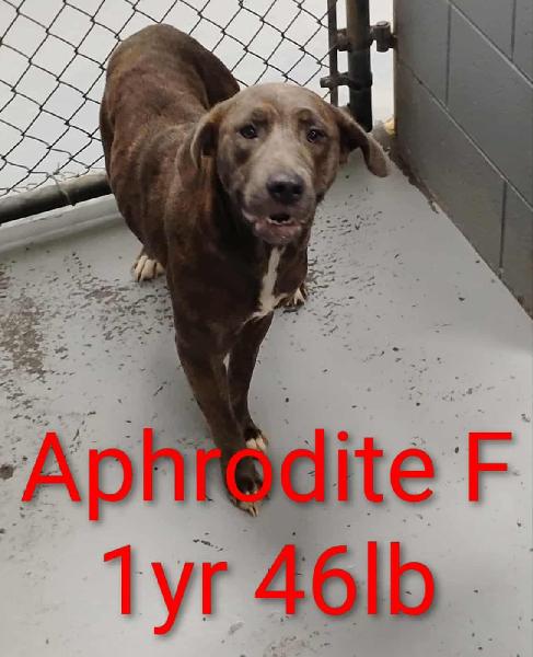 If you are interested in Aphroditie phone 276-679-6750 for an appointment to meet her at Wise County Animal Shelter. We are open Monday - Friday 10am - 3:30pm, .